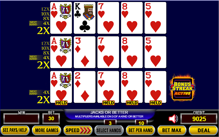 अल्टीमेट एक्स पोकर बोनस स्ट्रीक -- उदाहरण