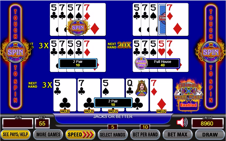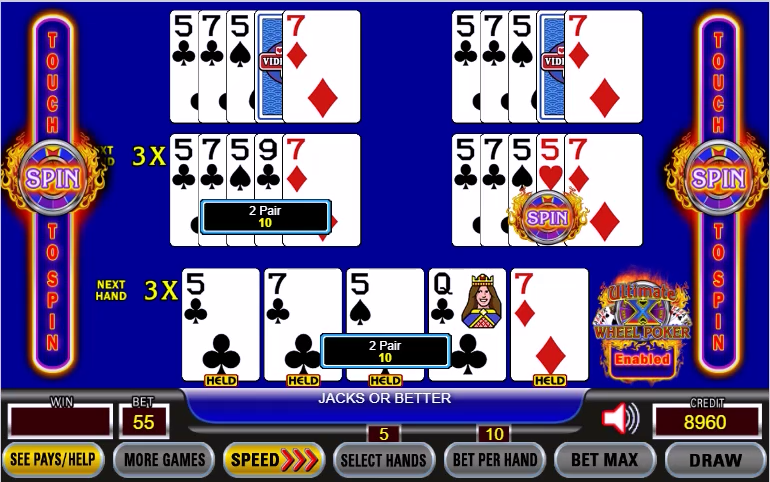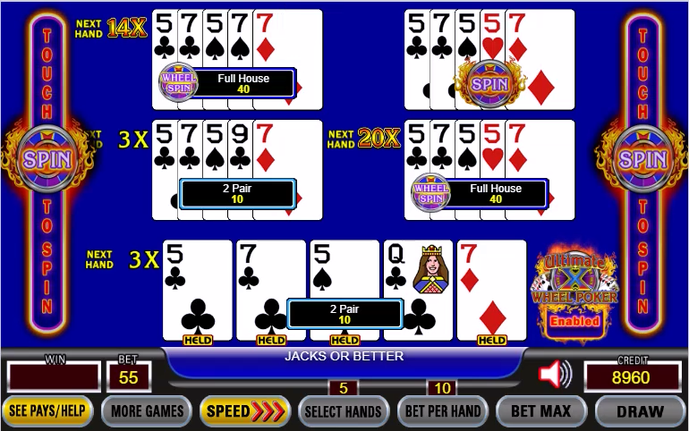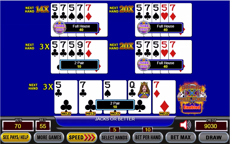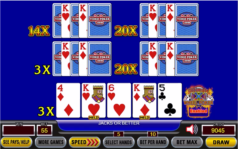 - अल्टीमेट एक्स व्हील पोकर केवल 3-प्ले और 5-प्ले में उपलब्ध है।