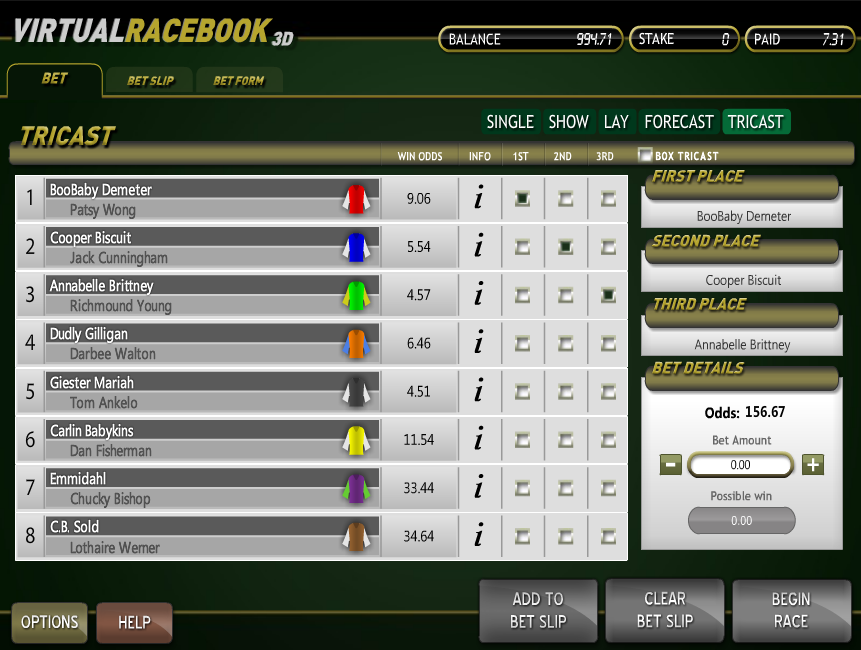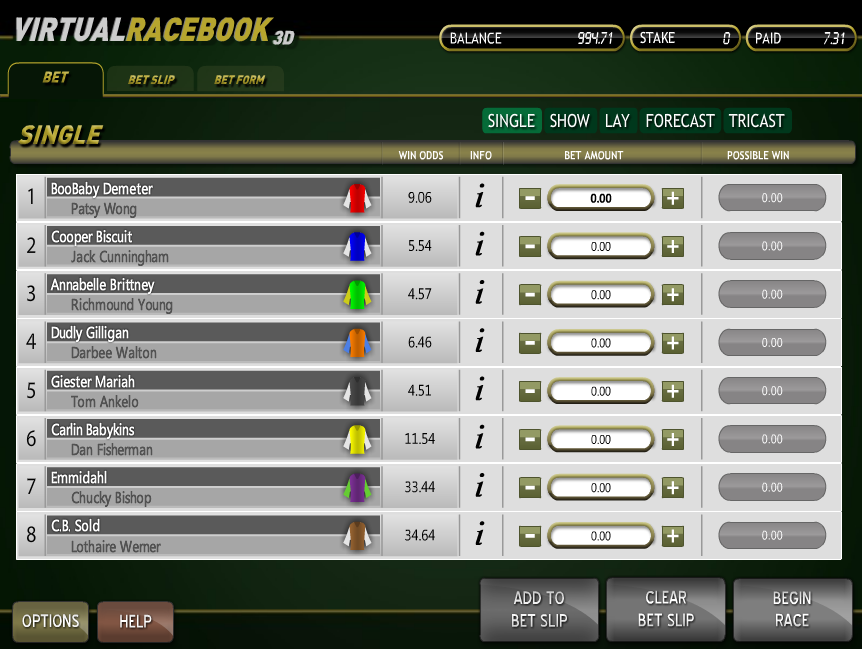 वर्चुअल रेसबुक 3D, बेटसॉफ्ट द्वारा प्रस्तुत एक घुड़दौड़ का खेल है। इस खेल में दांव लगाने के पाँच अलग-अलग तरीके और एक बहुत ही यथार्थवादी दौड़ का अनुभव है।
