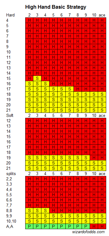 निम्न तालिका उच्च हाथ के लिए बुनियादी रणनीति दर्शाती है।