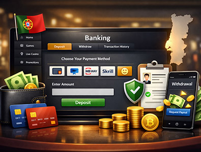 अधिकांशतः, लाइसेंस प्राप्त पुर्तगाली ऑपरेटरों को स्थानीय भुगतान विधियों जैसे कि मल्टीबैंको (एक स्थानीय इंटरबैंक नेटवर्क, जो जमा और निकासी के लिए एक लोकप्रिय विकल्प है) और एमबी वे (एक त्वरित मोबाइल भुगतान विकल्प जो पुर्तगाली बैंकों से जुड़ता है) का समर्थन करना चाहिए। इसके अलावा, पुर्तगाली बैंकों द्वारा जारी किए गए वीज़ा और मास्टरकार्ड कार्ड, बैंक ट्रांसफर और पेपाल , स्क्रिल और नेटेलर जैसे लोकप्रिय ई-वॉलेट भी उपलब्ध होंगे।