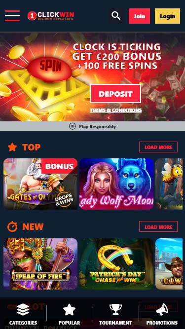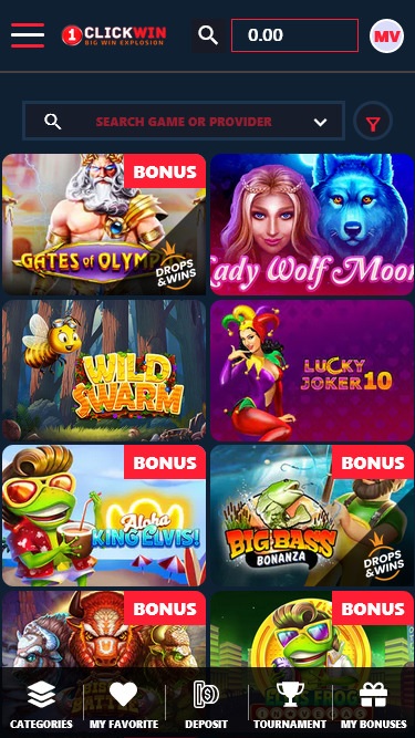 1ClickWin Casino स्क्रीनशॉट