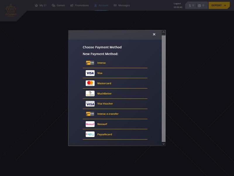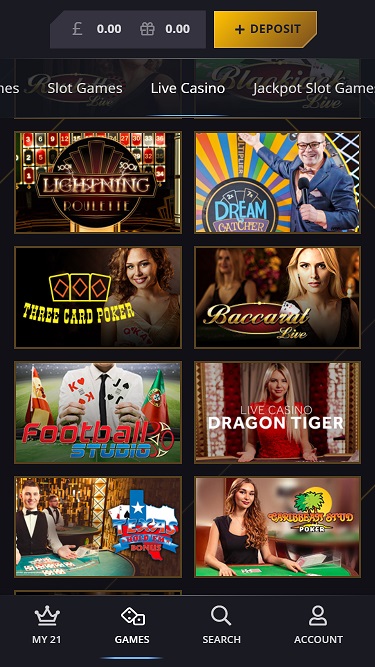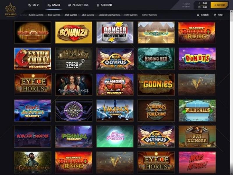 21 कैसीनो Microgaming, Net Entertainment, 1x2gaming, Barcrest, Big Time Gaming, ELK Studios, Evolution Gaming, EYECON, Ezugi, lightningboxgames, Novomatic, Oryx, Play'n GO, Rabcat, Relax Gaming, Thunderkick, Wazdan, Realistic Games, Booming Games, Stakelogic, Pragmatic Play, Nolimit City, Felt Gaming, Red Tiger Gaming, IGT, Spinomenal, Fantasma Games, SYNOT Games, Kalamba, Revolver Gaming, Skywind, Spinmatic, Triple Edge Studios, BGAMING, Northern Lights Gaming, Stormcraft Studios, Switch Studios, Electric Elephant Games, Pocket Games Soft, All41 Studios, Gameburger Studios, Pulse 8 Studios, Neon Valley Studios, Golden Rock Studios, Spearhead Studios, Swintt, Shuffle Master, SpinPlay Games, GONG Gaming, Blue Guru Games, Lady Luck Games, Buck Stakes Entertainment, Design Works Gaming, Games Global, 2by2 Gaming, Ainsworth, Bally Technologies, Blueprint Gaming, Endemol Games, Greentube, Leander Games, Merkur Gaming, NYX Interactive, Push Gaming, Tom Horn Gaming, WMS, Inspired Gaming, Gaming Realms, SG Interactive, Red7Mobile, CORE Gaming, Scientific Games, Side City Studios, Reel Time Gaming, Authentic Gaming, Iron Dog Studio, Old Skool Studios, Foxium, Betdigital, Just For The Win, Storm Gaming Technology, PearFiction Studios, Apollo Games, Wild Streak Gaming, Slingshot Studios, Fortune Factory Studios, Jade Rabbit Gaming, 4ThePlayer, AvatarUX, Gamevy, Crazy Tooth Studio, NetGaming, High 5 Games, ReelPlay, AGS Interactive, Alchemy Gaming, Plank Gaming, Black Pudding Games, Snowborn Games, Hacksaw Gaming, Max Win Gaming, Gold Coin Studios, Half Pixel Studios, SilverBack Gaming, Peter And Sons, Aurum Signature Studios, Armadillo Studios, Lucksome Gaming, Area Vegas, RAW iGaming, Leap Gaming, Wishbone Games, Spribe, Print Studios, Gaming Corps, HammerTime Games, Four Leaf Gaming, INO Games, Nailed It! Games, Live 5, Neko Games and Light & Wonder द्वारा संचालित है, और कैसीनो के खेल एक वेब-आधारित तत्काल प्ले प्लेटफॉर्म के साथ-साथ एक मोबाइल साइट के माध्यम से प्रदान किए जाते हैं, जो स्मार्टफोन और टैबलेट के माध्यम से खेलने की अनुमति देता है।