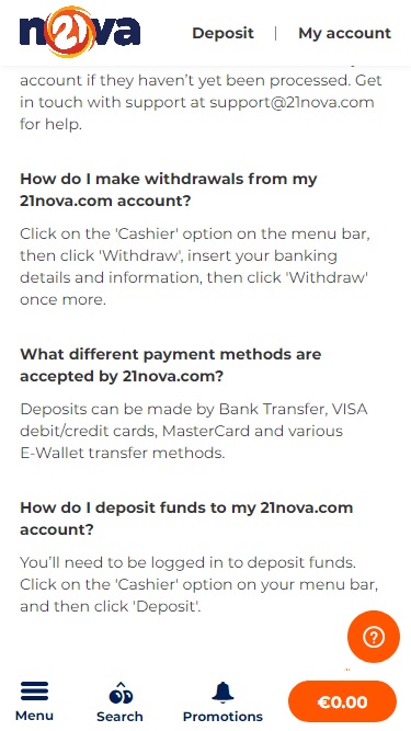 21nova अपने ग्राहकों को एक लॉयल्टी प्रोग्राम प्रदान करता है, जिसके तहत वे कैसीनो में दांव पर लगाए गए प्रत्येक डॉलर पर पॉइंट प्रदान करते हैं। ये पॉइंट जमा होते हैं और 1,000 डॉलर की दर से 1 डॉलर में भुनाए जा सकते हैं। VIP प्लेयर लेवल में आगे बढ़ने वाले खिलाड़ी तेज़ी से पॉइंट अर्जित कर सकते हैं, और कभी-कभार होने वाले प्रमोशन भी पॉइंट को तेज़ी से जमा करने की सुविधा देते हैं।