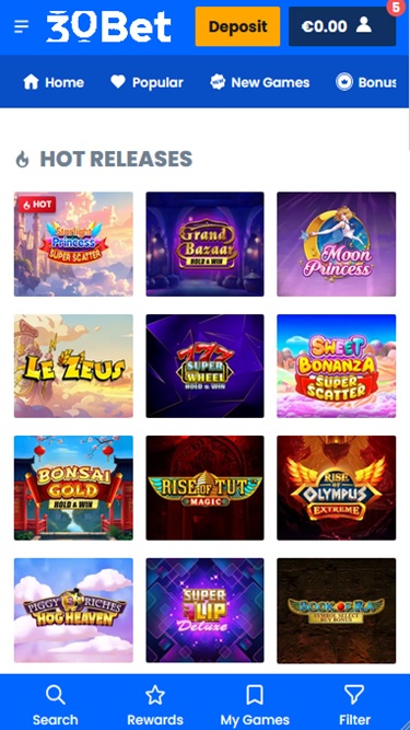 इससे पहले कि हम कैसीनो की पेशकशों को अधिक विस्तार से देखें, यह भी ध्यान दें कि 30Bet.com सभी डिवाइसों पर उपलब्ध है , चाहे उनकी स्क्रीन का आकार कुछ भी हो, इसलिए आप अपने मोबाइल फोन या किसी भी व्यक्तिगत कंप्यूटर से कैसीनो सामग्री का आनंद ले सकते हैं, चाहे आपका डिवाइस किसी भी ऑपरेटिंग सिस्टम का उपयोग करता हो।
