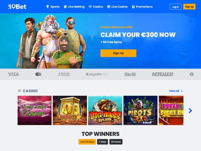 यह एक ऑनलाइन कैसीनो और खेल सट्टेबाजी वेबसाइट है। पहली नज़र में, यह अपनी किस्मत आजमाने और नवीनतम उपलब्ध ऑनलाइन कैसीनो गेम्स देखने के लिए एक सुव्यवस्थित और सुंदर जगह लगती है। 30Bet.com को कुराकाओ गेमिंग कंट्रोल बोर्ड द्वारा लाइसेंस और विनियमित किया जाता है, और यह जर्मनी और यूनाइटेड किंगडम के खिलाड़ियों के लिए है।