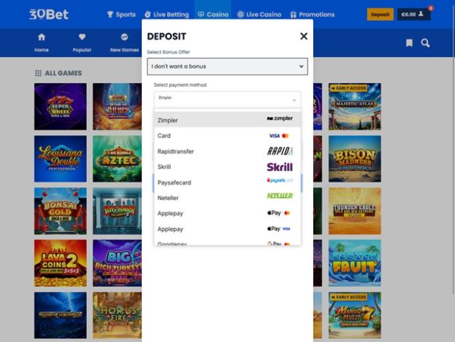 30Bet.com कैसीनो में एक विशाल जुआ लाइब्रेरी है जिसमें ढेरों ऑनलाइन स्लॉट, ढेरों इंस्टेंट गेम्स और हर तरह के कैसीनो गेम शामिल हैं जिनकी आप कल्पना कर सकते हैं। इसके अलावा, भुगतान विकल्पों का एक प्रभावशाली संग्रह, एक आकर्षक प्रमोशनल प्लान और भी बहुत कुछ मौजूद है।