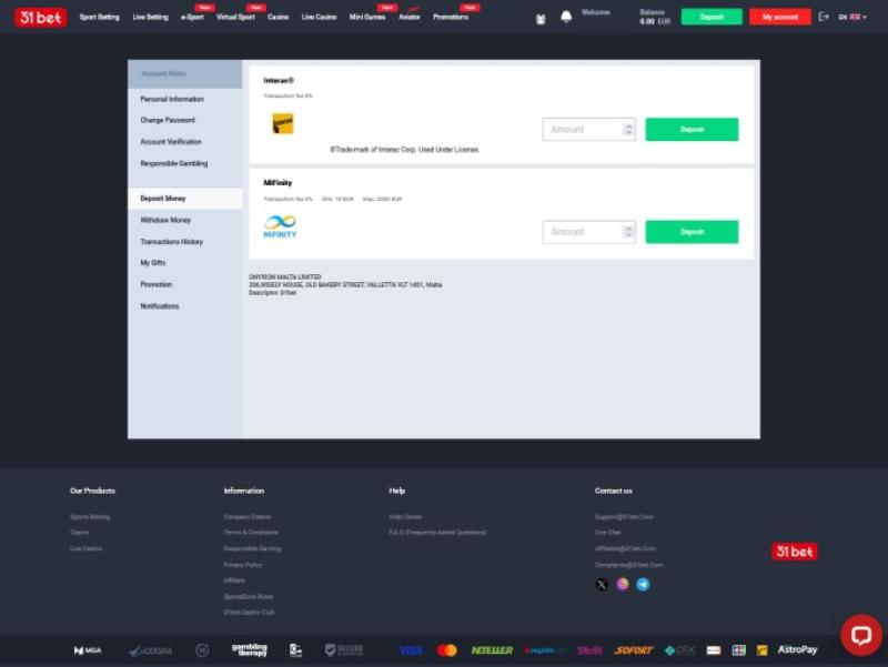 31bet कैसीनो एक ऑनलाइन कैसीनो और स्पोर्ट्स बेटिंग ऑपरेटर है जो माल्टा के कानूनों के तहत पंजीकृत है और माल्टा गेमिंग अथॉरिटी द्वारा विनियमित और लाइसेंस प्राप्त है। ब्रांड के लक्षित ग्राहक फ़िनलैंड, नॉर्वे, स्वीडन, न्यूज़ीलैंड और कनाडा के खिलाड़ी हैं।