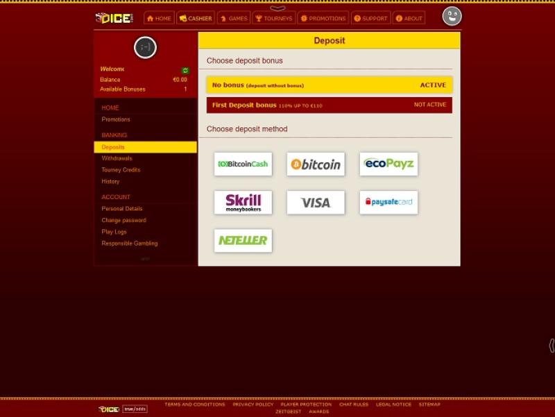 3Dice Casino पर बैंकिंग विकल्प