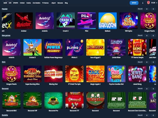 जहाँ तक खेलों की विशाल संख्या की बात है, तो अनगिनत ऑनलाइन स्लॉट उपलब्ध हैं, लेकिन हम समीक्षा के विशिष्ट भाग में उनके बारे में बात करेंगे। खिलाड़ी ब्लैकजैक, रूलेट और बैकारेट जैसे विभिन्न टेबल गेम्स का आनंद ले सकते हैं । इन खेलों का आनंद लाइव डीलर के साथ भी लिया जा सकता है ताकि आपको पारंपरिक कैसीनो अनुभव मिल सके।