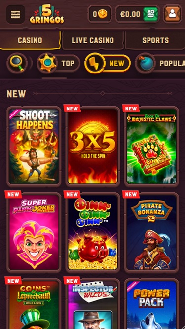 5Gringos का भी घर है 225 नीचे सूचीबद्ध अन्य खेल: