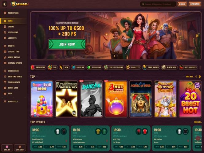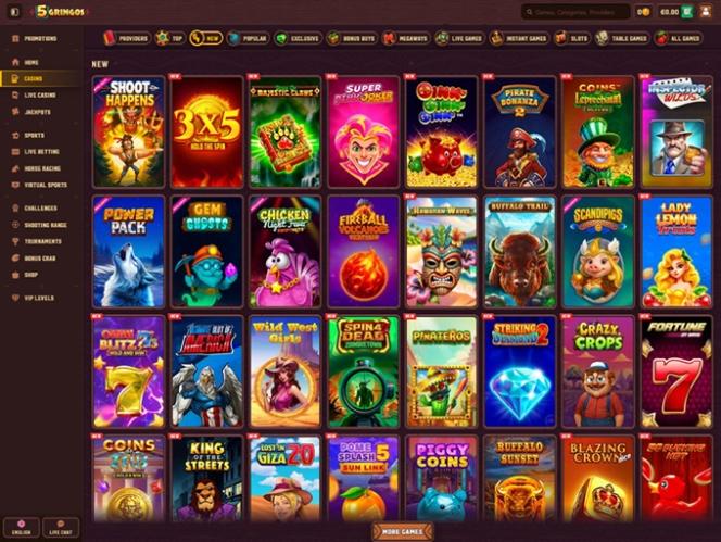 5Gringos कैसीनो एक ऑनलाइन सट्टेबाजी साइट है जिसका संचालन Rabidi NV द्वारा किया जाता है और इसे कुराकाओ द्वारा लाइसेंस प्राप्त है। इस कैसीनो की थीम मैक्सिकन है और यह खेलों की एक विशाल लाइब्रेरी, क्रिप्टोकरेंसी सपोर्ट और एक शानदार वीआईपी प्रोग्राम प्रदान करता है। ये सभी मिलकर 5Gringos को दक्षिण सीमा की यात्रा करने के इच्छुक सट्टेबाजों के लिए एक अच्छा विकल्प बनाते हैं।कैसीनो जानकारी