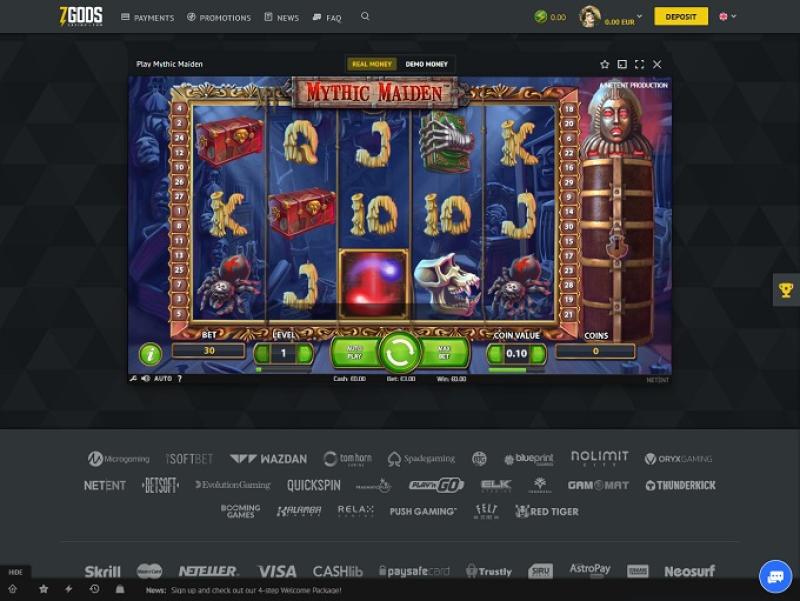 7 गॉड्स कैसीनो Microgaming, BetSoft, ELK Studios, iSoftBet, Play'n GO, Quickspin, Relax Gaming, Yggdrasil, Wazdan, Booming Games, Pragmatic Play, Nolimit City, Felt Gaming, Red Tiger Gaming, Spadegaming, Games Global, Blueprint Gaming, Push Gaming and Tom Horn Gaming द्वारा संचालित है और कैसीनो के गेम एक वेब-आधारित इंस्टेंट प्ले प्लेटफ़ॉर्म के माध्यम से उपलब्ध कराए जाते हैं। इसका मतलब है कि सब कुछ आपके इंटरनेट ब्राउज़र के माध्यम से लोड होता है, न कि किसी डाउनलोड करने योग्य सॉफ़्टवेयर के माध्यम से। कैसीनो मोबाइल प्ले को भी पूरी तरह से सपोर्ट करता है, जिससे सट्टेबाज अपने स्मार्टफोन या टैबलेट के माध्यम से साइट तक पहुँच सकते हैं।