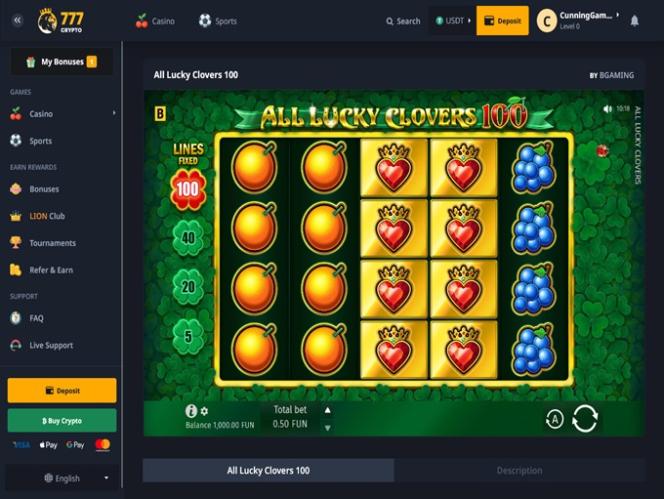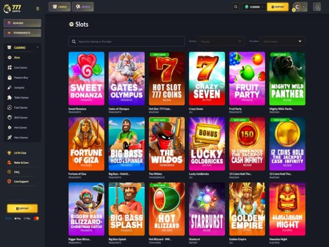 ऑनलाइन स्लॉट्स के प्रशंसक यह देखकर खुश होंगे कि वे 777 क्रिप्टो कैसीनो में कितने वन-आर्म्ड बैंडिट्स खेल सकते हैं। यहाँ हज़ारों अलग-अलग थीम और मैकेनिक्स वाले अनूठे गेम्स का एक विशाल संग्रह उपलब्ध है। यहाँ खिलाड़ियों को बिगर बेस ब्लिज़र्ड क्रिसमस कैच, ऑल लकी क्लोवर्स 100, ग्रैंड स्पिन, एक्सवेज़ होर्डर एक्सस्प्लिट, एज़्टेक मैजिक, एज़्टेक मैजिक डीलक्स, मेगा मनी मल्टीप्लायर, गेट्स ऑफ़ ओलिंपस, स्वीट बोनान्ज़ा, जेम्स ऑफ़ सेरेन्गेटी, शील्ड ऑफ़ स्पार्टा, स्पाइसी फ्रूट्स, शैडो सोसाइटी, बारबेरियन फ्यूरी, रिलीज़ द क्रैकन 2, बुक ऑफ़ वैम्पायर्स, स्वॉर्ड ऑफ़ एरेस, बिग बेस कीपिंग इट रील, स्पीड विनर, कैंडी स्टार्स और ट्रिपल रॉयल गोल्ड खेलना बहुत पसंद है।