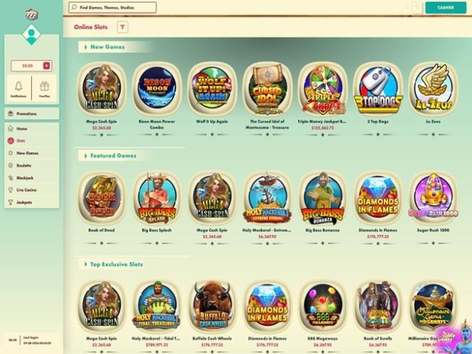 777 कैसीनो में खेलने के लिए कई स्लॉट उपलब्ध हैं, जिनमें दर्जनों वीडियो स्लॉट और क्लासिक गेम्स का एक छोटा सा संग्रह शामिल है। बड़े इनामों की तलाश में रहने वालों को प्रोग्रेसिव जैकपॉट का एक बड़ा संग्रह मिलेगा, जिसमें लाखों रुपये के इनाम होते हैं।