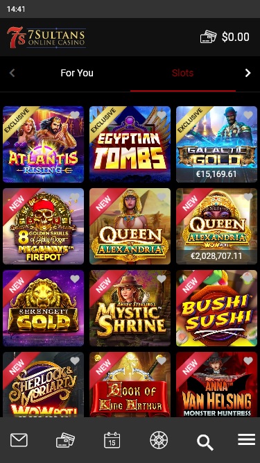 7 सुल्तान्स Microgaming, Net Entertainment, Evolution Gaming, Ezugi, Rabcat, Pragmatic Play, Red Tiger Gaming, Triple Edge Studios, Northern Lights Gaming, Stormcraft Studios, Switch Studios, Electric Elephant Games, All41 Studios, Gameburger Studios, Pulse 8 Studios, Neon Valley Studios, SpinPlay Games, GONG Gaming, On Air Entertainment, Buck Stakes Entertainment, Games Global, Old Skool Studios, Foxium, Just For The Win, PearFiction Studios, Wild Streak Gaming, Slingshot Studios, Fortune Factory Studios, Crazy Tooth Studio, Alchemy Gaming, Snowborn Games, Gold Coin Studios, Half Pixel Studios, Eurostar Studios and Aurum Signature Studios द्वारा संचालित है, जो सैकड़ों बेहतरीन गेम्स के साथ-साथ एक आसान गेमिंग प्लेटफ़ॉर्म भी प्रदान करता है। यह कैसीनो वेब और डाउनलोड करने योग्य दोनों सॉफ्टवेयर संस्करणों में उपलब्ध है, हालाँकि ज़्यादातर सट्टेबाज़ वेब संस्करण को ही चुनेंगे क्योंकि इसे डाउनलोड करना और खाता पंजीकृत करना कम बोझिल है। जो लोग अपने स्मार्टफ़ोन या टैबलेट पर खेलना चाहते हैं, उनके लिए कैसीनो का एक मोबाइल संस्करण भी उपलब्ध है।