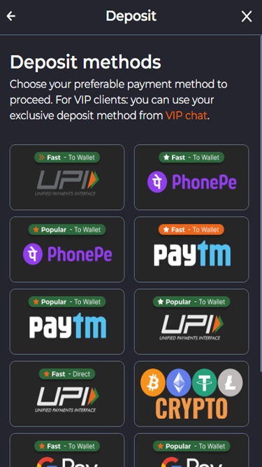 जो खिलाड़ी कुछ आसान खेलना पसंद करते हैं, उन्हें भी उपलब्ध सभी क्रैश गेम्स ब्राउज़ करने में बहुत मज़ा आएगा। सबसे लोकप्रिय हैं क्रैश इन्फिनिटी, एविएटर, एयरो, पायलट, जेटएक्स, क्रिकेट क्रैश, ग्रेविटी, क्रैश पोकी, किक इट!, माइन्स, क्रैश ड्यूएल एक्स और सांबा सॉकर।