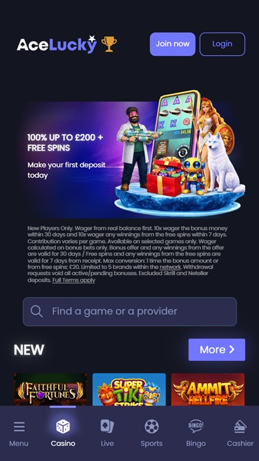 ऐस लकी कैसीनो एक ऑनलाइन गेमिंग साइट है जिसकी स्थापना 2017 में प्रोग्रेसप्ले लिमिटेड द्वारा की गई थी और यह यूरोप पर केंद्रित होकर दुनिया भर में संचालित होती है। इस कैसीनो में खेलों की एक विशाल लाइब्रेरी है, लेकिन दुर्भाग्य से, प्रचारों पर कुछ मानक से अधिक दांव लगाने की शर्तें इस साइट को असाधारण नहीं बनाती हैं।