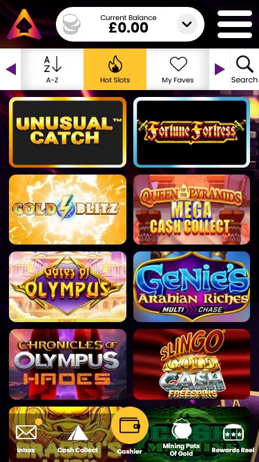 हॉट स्लॉट्स अनुभाग में शामिल हैं: एरिया लिंक पिग्गी बैंक, ब्लडथर्स्ट, ब्लेज़िन हॉट 7s बिग बोनस, रील एम इन! थोड़ा गड़बड़, पेंडोरा बॉक्स ऑफ एविल, गोल्ड ब्लिट्ज, गोल्ड रश एक्सप्रेस, स्लिंगो स्पेस इनवेडर्स, बीटलजूस मेगावेज़, एल डियाब्लो, मोनोपॉली मनी ग्रैब, ग्रैनी बनाम लाश, 3 पॉट्स रिचेस, पाइरेट्स, बिग बास एडवेंचर, रैबिट रॉयल, गोंजो क्वेस्ट मेगावेज़, रॉयल जोकर होल्ड एंड विन, बाउंटी रेड, केस क्लोज्ड, स्लिंगो दाविंची डायमंड्स, बुक ऑफ शैडोज़, 4 फैंटास्टिक फिश इन इजिप्यम गोंजो क्वेस्ट, स्टारबर्स्ट, रेनबो रिचेस पिक एन मिक्स, ब्लेज़िंग मैमोथ एक्सएल, रेनबो रिचेस फ्री स्पिन्स, अमेरिकन गोल्ड फीवर, 4 फैंटास्टिक फिश, रिच वाइल्ड एंड द बुक ऑफ डेड, कैटरीना, रेनबो बर्स्ट, एज़्टेक सुपरट्रैक, रैम्सेस बुक ऑफ रिंग्स सुपरस्लाइस, 243 क्रिस्टल फ्रूट्स...