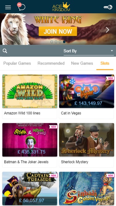 ऐस किंगडम कैसीनो में खेलने के लिए वीडियो स्लॉट्स का एक बड़ा संग्रह उपलब्ध है, साथ ही क्लासिक गेम्स का भी अच्छा संग्रह है। प्रोग्रेसिव जैकपॉट भी उपलब्ध हैं, जो जीतने वाले भाग्यशाली लोगों को लाखों डॉलर के इनाम देते हैं।
