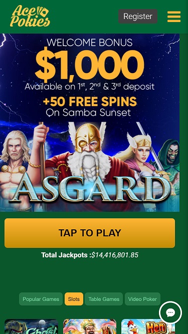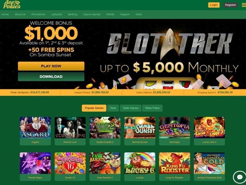 ऐस पोकीज़ में क्लासिक और वीडियो दोनों तरह के स्लॉट उपलब्ध हैं, और कैसीनो मानक RTG किराया भी प्रदान करता है। यहाँ प्रोग्रेसिव जैकपॉट भी हैं जिन्हें जीता जा सकता है, और खेलने के लिए अच्छी संख्या में मोबाइल स्लॉट भी उपलब्ध हैं।