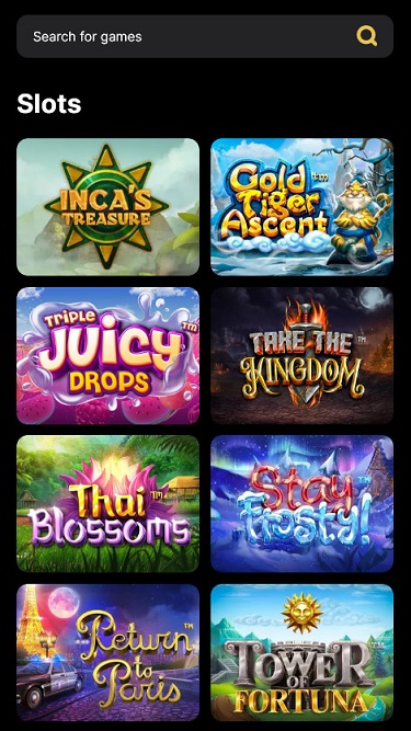 प्लेटफ़ॉर्म एक बेहद शानदार लेआउट के साथ डार्क मोड थीम का इस्तेमाल कर रहा है, जो अक्सर ऑनलाइन कैसीनो में देखने को नहीं मिलता। होमपेज को दो अलग-अलग सेक्शन में पूरी तरह से संतुलित किया गया है, जो हेडर के ठीक नीचे स्थित हैं। एक "लोकप्रिय गेम्स" के लिए और दूसरा "लाइव कैसीनो" के लिए आरक्षित है। खेल और लॉयल्टी प्रोग्राम सेक्शन और कैसीनो सेवाओं के बारे में अधिक जानकारी आसानी से उपलब्ध है।