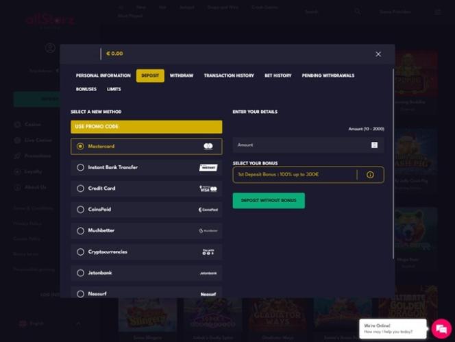 जो लोग ऑनलाइन कैसीनो में अच्छी प्रचार सामग्री की सराहना करते हैं, वे ऑलस्टार्ज़ कैसीनो टीम की पेशकश से खुश होंगे। यह ब्रांड अपने खिलाड़ियों के लिए कई प्रमोशन और बोनस प्रदान करता है, और नए खाते बनाने वाले खिलाड़ी एक शानदार स्वागत पैकेज का दावा कर सकते हैं।