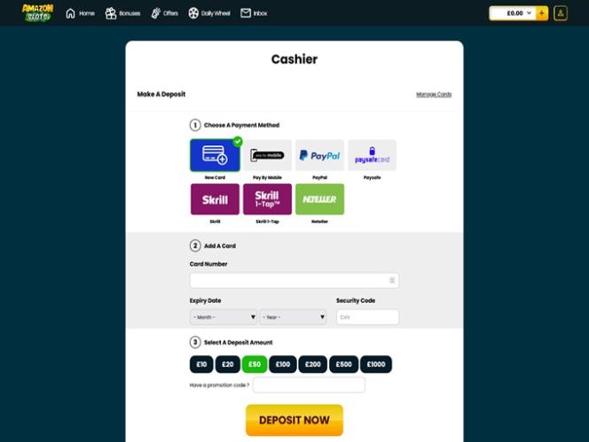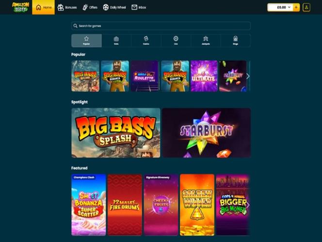 अमेज़न स्लॉट्स एक ऑनलाइन कैसीनो है जो कनाडा (ओंटारियो सहित) और यूनाइटेड किंगडम के खिलाड़ियों पर केंद्रित है। यह कैसीनो एल्डर्नी जुआ नियंत्रण आयोग और ग्रेट ब्रिटेन में जुआ आयोग द्वारा जारी लाइसेंस के तहत संचालित होता है।