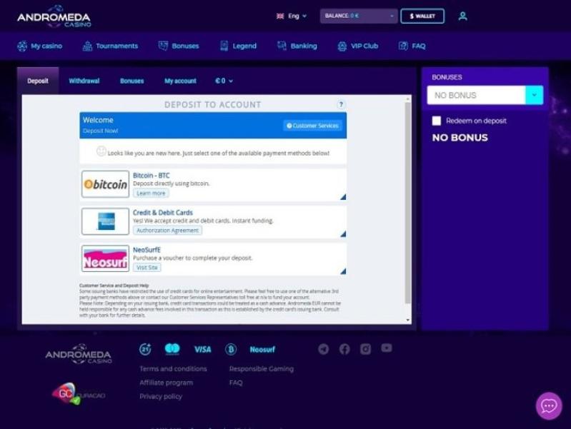 एंड्रोमेडा कैसीनो द्वारा उपलब्ध भुगतान विधियों पर एक नज़र डालें: