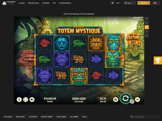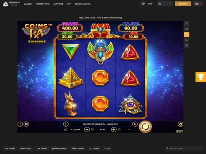 इस समीक्षा के प्रकाशन तक, एनोनिमस कैसीनो में स्लॉट की अच्छी संख्या उपलब्ध है, और लगभग 450 गेम उपलब्ध हैं। इस गेम संग्रह में हैबानेरो, बूमिंग गेम्स, एंडोर्फिना और मिस्टर स्लॉटी जैसे गेम शामिल हैं। कई गेम्स में मोबाइल स्लॉट संगतता भी शामिल है, और जीतने के लिए प्रोग्रेसिव जैकपॉट भी उपलब्ध हैं।