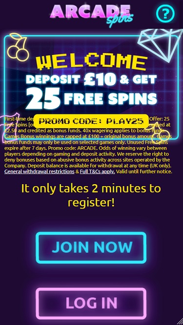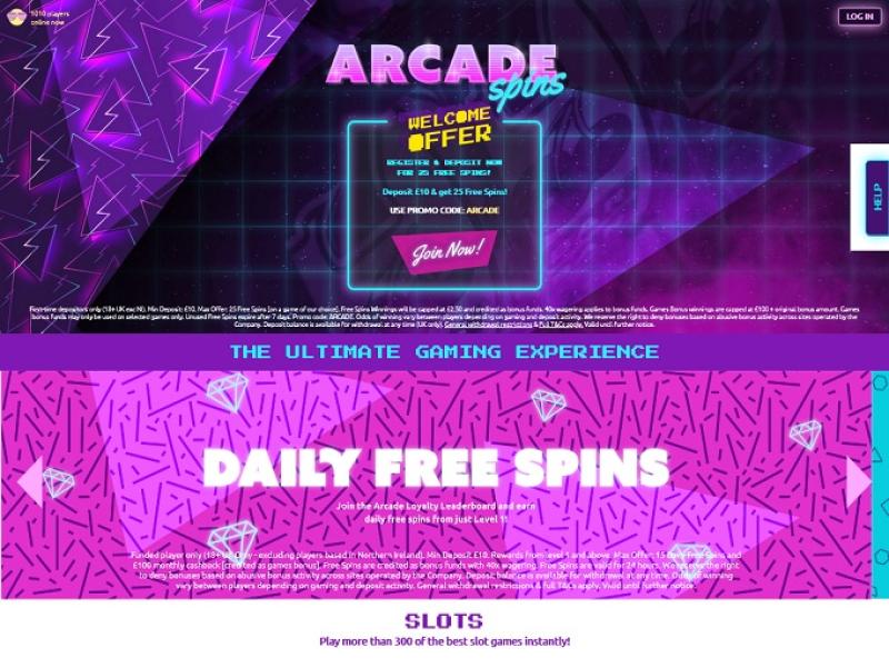 आर्केड स्पिन्स कैसीनो एक ऑनलाइन सट्टेबाजी साइट है जिसे 2017 में डील ऑर नो डील कैसीनो से रीब्रांड किया गया था। यह साइट कसावा एंटरप्राइजेज द्वारा संचालित है, जो सट्टेबाजी की दिग्गज कंपनी 888 होल्डिंग्स की सहायक कंपनी है। एक बेहतरीन बैंकिंग प्रणाली के साथ-साथ एक रेट्रो लुक और फील प्रदान करते हुए, आर्केड स्पिन्स एक अच्छी स्लॉट-केंद्रित सट्टेबाजी साइट है, जो कुछ अनुचित बोनस शर्तों और कम बैंकिंग सीमाओं के कारण थोड़ी कमज़ोर है, जो इतने बड़े ऑपरेटर के लिए अस्वीकार्य हैं।