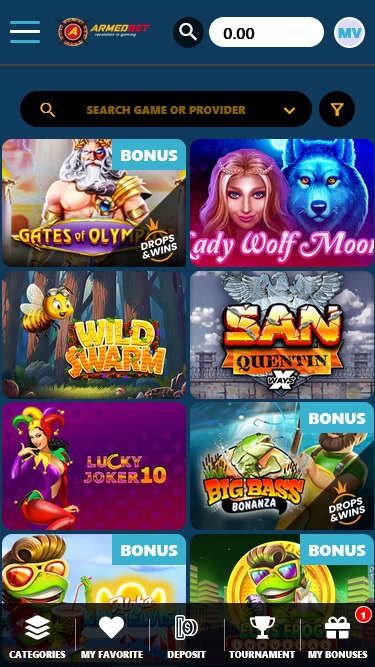 विश्वसनीय ऑनलाइन कैसीनो सॉफ़्टवेयर आपूर्तिकर्ताओं के साथ साझेदारी प्रतिष्ठा का निर्माण करती है और खिलाड़ियों को उच्च-गुणवत्ता वाली सेवा और मनोरंजन की गारंटी देती है। आर्म्डबेट ने निम्नलिखित श्रेणियों के लिए सावधानीपूर्वक गेम चुने हैं: वीडियो स्लॉट, जैकपॉट स्लॉट, क्लासिक स्लॉट, लाइव डीलर गेम्स , आर्केड गेम्स, टेबल गेम्स और वीडियो पोकर।