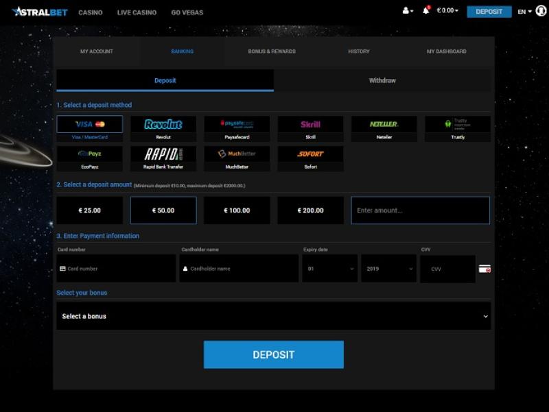 AstralBet पर बैंकिंग विकल्प