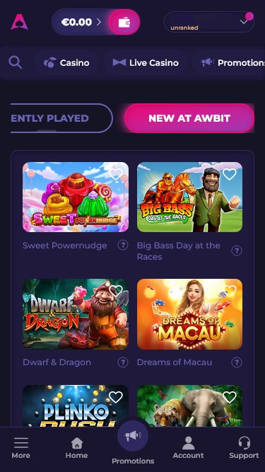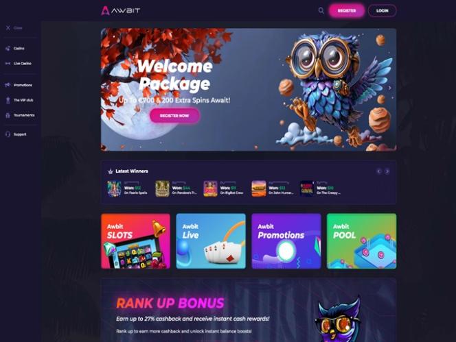 कैसीनो अपने आकर्षक प्रमोशन और Awbit पूल भी प्रदर्शित करता है, जो एक अभिनव सुविधा है जो खिलाड़ियों को सामूहिक कैशबैक प्रतिशत और विशेष पुरस्कार अर्जित करने की अनुमति देती है। जमा करके और गेम खेलकर, आप टिकट जीत सकते हैं, जिन्हें आप बाद में Awbit पूल में डाल सकते हैं। इससे आप सभी लाभों का लाभ उठा पाएँगे।
