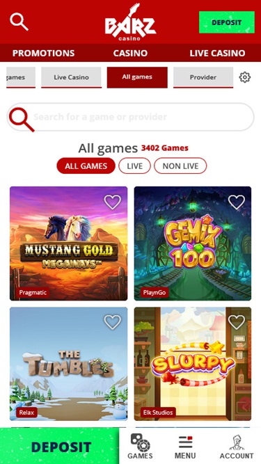 100 से ज़्यादा डेवलपर्स के रणनीतिक साझेदार होने के कारण, खिलाड़ी निश्चिंत हो सकते हैं कि बार्ज़ कैसीनो न सिर्फ़ मात्रा के मामले में, बल्कि गुणवत्ता के मामले में भी बहुत कुछ प्रदान करता है। माइक्रोगेमिंग, बारक्रेस्ट , ऐन्सवर्थ, प्ले'एन गो, आदि जैसे प्रसिद्ध दिग्गजों के अलावा, पंटर्स स्पीयरहेड स्टूडियोज़ , स्नोबॉर्न, प्रोबेबिलिटी जोन्स, और कई अन्य द्वारा पेश किए गए बेहतरीन गेम भी पा सकते हैं।