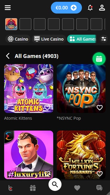 bCasino Microgaming, Net Entertainment, BetSoft, 1x2gaming, Big Time Gaming, Evolution Gaming, Ezugi, Habanero Systems, Play'n GO, playson, Endorphina, Wazdan, Booming Games, Pragmatic Play, Nolimit City, Red Tiger Gaming, Spinomenal, Fugaso, Revolver Gaming, Platipus Gaming, Skywind, Triple Edge Studios, BGAMING, Fazi, Evoplay, Stormcraft Studios, Switch Studios, All41 Studios, Gameburger Studios, Pulse 8 Studios, Neon Valley Studios, Swintt, SpinPlay Games, Real Dealer Studios, On Air Entertainment, Buck Stakes Entertainment, Games Global, Blueprint Gaming, Gamomat, Reel Time Gaming, Iron Dog Studio, Old Skool Studios, Foxium, Just For The Win, Wild Streak Gaming, Slingshot Studios, Fortune Factory Studios, RubyPlay, Alchemy Gaming, Black Pudding Games, Snowborn Games, Half Pixel Studios, Peter And Sons, Aurum Signature Studios, Lucksome Gaming, Area Vegas, Leap Gaming, Wishbone Games, Spribe, Circular Arrow, Gaming Corps, HammerTime Games, INO Games, Nailed It! Games, Neko Games, Reel Kingdom and ICONIC21 द्वारा संचालित है और समूह के गेम एक वेब-आधारित प्लेटफ़ॉर्म के माध्यम से प्रदान किए जाते हैं जो आपके इंटरनेट ब्राउज़र के माध्यम से लोड होता है। साइट अच्छी तरह से डिज़ाइन की गई है और मोबाइल प्ले को सपोर्ट करती है, जिससे आप अपने फ़ोन या टैबलेट पर रीलों को स्पिन कर सकते हैं।