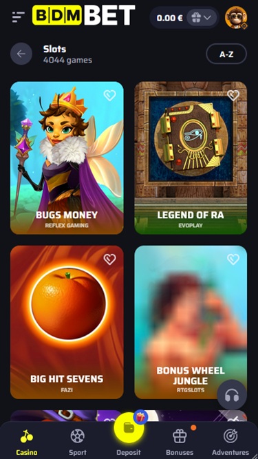 आजकल, आपको ऐसे कैसीनो में जाना मुश्किल लगेगा जहाँ ऑनलाइन स्लॉट्स मुख्य आकर्षण न हों। यही बात BDM BET कैसीनो के लिए भी कही जा सकती है, जहाँ आप खेलने के लिए कई अलग-अलग और अनोखे वन-आर्म्ड बैंडिट्स में से चुन सकते हैं, जिनमें सबसे लोकप्रिय हैं रॉयल जोकर होल्ड एंड विन 3x3, वाइल्ड कैश x9990, मर्ज अप, मून ऑफ रा 3x3 रनिंग विन्स, जॉनी कैश, रॉयल हाई-रोड, फॉर्च्यून फाइव, लायन जेम्स होल्ड एंड विन, बीयर बोनान्ज़ा, सैन क्वेंटिन, बफ़ेलो हंटर, मिसरी माइनिंग, बोनान्ज़ा बिलियन, फॉर द रियल्म!, वाइल्ड स्पिन डीलक्स और इजिप्ट्स सन।