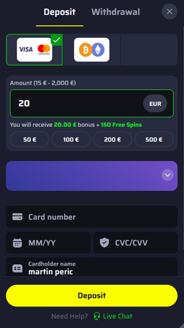 New customers only. T&C apply. 18+. PLUS 150 Free Spins, Min Deposit: €20. Max Bet: €5. Max Cashout: 10 x Bonus. Max Cashout(Free Spins): €50. Selected games only: See the website for a list of online slots. From day of activation bonus will be valid for 7 days.
