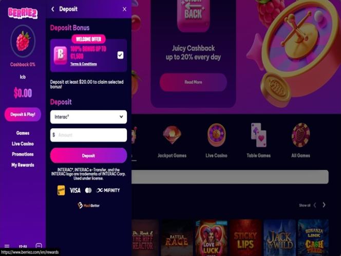 2025 में लॉन्च हुआ बेरीज़ एक ऑनलाइन कैसीनो है जो कनाडा और फिनलैंड के खिलाड़ियों को आकर्षित करने पर केंद्रित है। इसके विशाल कैसीनो संग्रह में हजारों अनूठे गेम शामिल हैं, जिनमें असली पैसे वाले स्लॉट और लाइव डीलर गेम से लेकर टेबल गेम और इंस्टेंट क्रैश गेम तक शामिल हैं। ब्रांड बोनस, फ्री स्पिन और कैशबैक ऑफ़र के साथ एक प्रभावी प्रचार योजना भी प्रदान करता है।