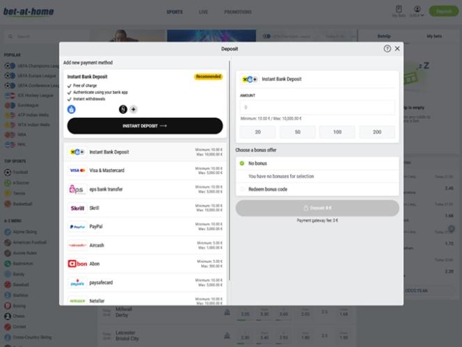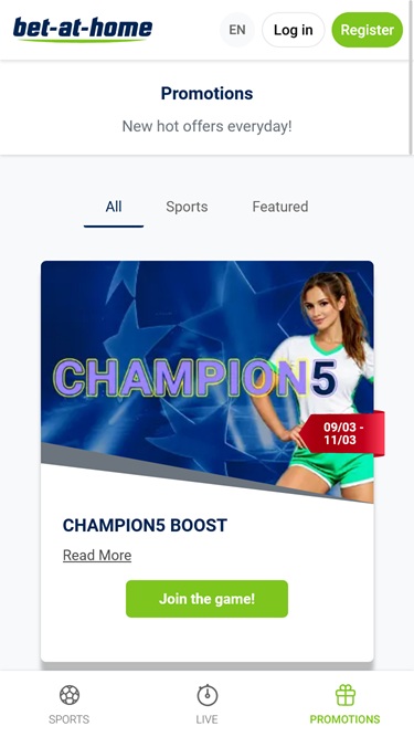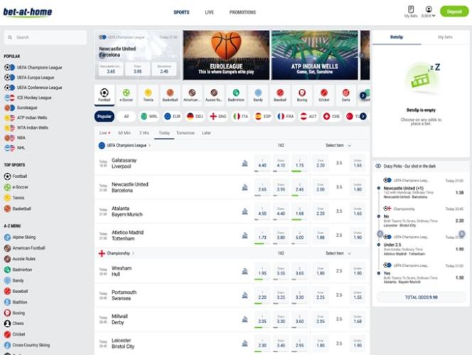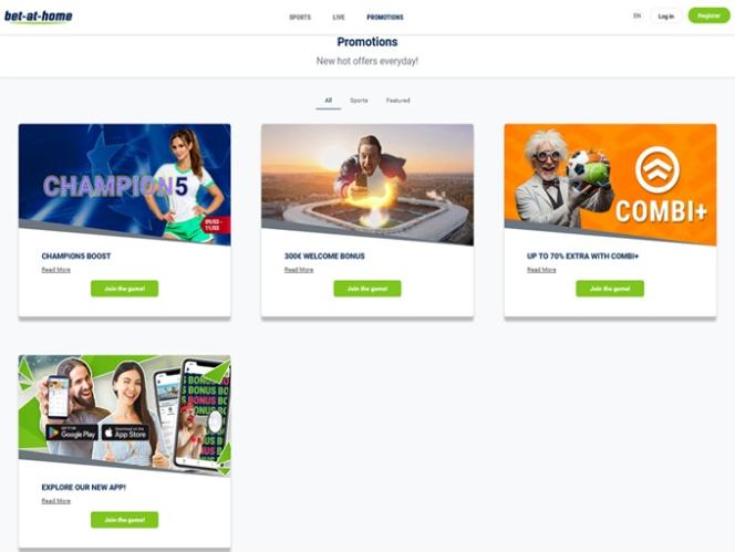 मानक कैसीनो खेलों के अलावा, बेट-एट-होम अपने ग्राहकों को एक मजबूत स्पोर्ट्सबुक और लाइव डीलर कैसीनो प्रदान करता है।