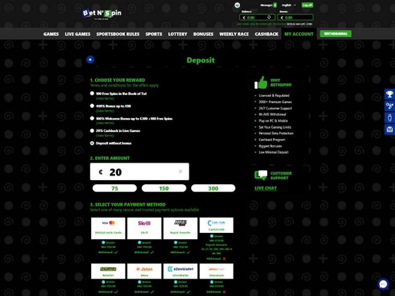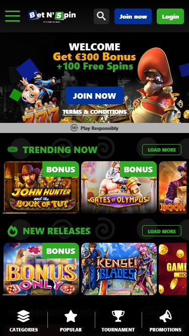 बेट एन स्पिन कैसीनो एक नई ऑनलाइन गेमिंग साइट है जिसे 2017 में हाईवेब वेंचर्स, एनवी द्वारा लॉन्च किया गया था। साइट के पास बहुत सारी शानदार चीजें हैं, और अपने छोटे से ऑनलाइन समय में बेट एन स्पिन ने खुद को एक सभ्य स्थान के रूप में स्थापित किया है, उनके गेम और अच्छे प्रबंधन के विशाल पुस्तकालय को देखते हुए, हालांकि कैसीनो का भुगतान समय कुछ खास नहीं है।