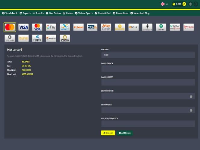 कैसीनो कैशियर कई भुगतान विकल्पों का समर्थन करता है जैसे कि प्रत्यक्ष बैंक वायर ट्रांसफर, प्रसिद्ध जमा और क्रेडिट भुगतान कार्ड, स्क्रिल और नेटेलर जैसे व्यापक रूप से उपयोग किए जाने वाले ई-वॉलेट और अन्य ऑनलाइन भुगतान प्रणालियां।