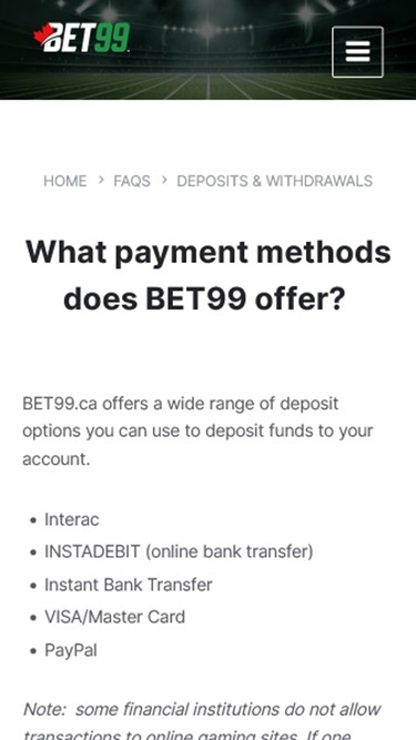 BET99 कैसीनो ओंटारियो एक ऑनलाइन स्पोर्ट्स बेटिंग ऑपरेटर और कैसीनो है जिसका स्वामित्व एक ऐसी कंपनी के पास है जो ओंटारियो के अल्कोहल और गेमिंग आयोग (AGCO) द्वारा लाइसेंस प्राप्त और विनियमित है। ओंटारियो के खिलाड़ी इस ब्रांड के मुख्य लक्षित ग्राहक हैं।
