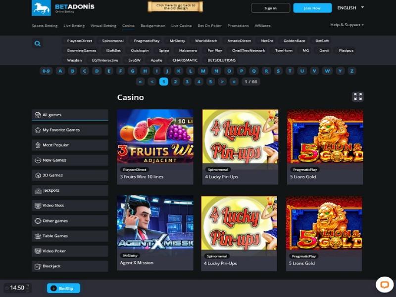बीटाडोनिस कैसीनो Microgaming, Net Entertainment, BetSoft, 1x2gaming, Amatic Industries, Big Time Gaming, Evolution Gaming, EYECON, Ezugi, Genesis Gaming, Habanero Systems, iSoftBet, lightningboxgames, playson, Quickspin, Rabcat, WM, Wazdan, Realistic Games, Booming Games, Pragmatic Play, LuckyStreak, Spinomenal, Red Rake Gaming, Skillzzgaming, Xprogaming, Platipus Gaming, Triple Edge Studios, Northern Lights Gaming, Evoplay, Stormcraft Studios, Switch Studios, SA Gaming, Electric Elephant Games, All41 Studios, Gluck Games, Gameburger Studios, Pulse 8 Studios, Neon Valley Studios, Golden Rock Studios, Spearhead Studios, SpinPlay Games, GONG Gaming, Lady Luck Games, Buck Stakes Entertainment, Games Global, Amusnet Interactive, Wizard Games, 2by2 Gaming, Ainsworth, Pariplay, Tom Horn Gaming, Genii, Spigo, Mr Slotty, MGA, Authentic Gaming, Old Skool Studios, Foxium, Just For The Win, Storm Gaming Technology, PearFiction Studios, Apollo Games, Wild Streak Gaming, Slingshot Studios, Fortune Factory Studios, Gamevy, Crazy Tooth Studio, Alchemy Gaming, Plank Gaming, Black Pudding Games, Snowborn Games, Hacksaw Gaming, Gold Coin Studios, Half Pixel Studios, Aurum Signature Studios and Charismatic द्वारा संचालित है, जो कैसीनो के वेब-आधारित प्लेटफ़ॉर्म पर खेले जाने वाले खेलों की एक विस्तृत श्रृंखला प्रदान करता है। बीटाडोनिस की एक मोबाइल साइट भी है, जो खिलाड़ियों को स्मार्टफ़ोन और टैबलेट के माध्यम से स्पोर्ट्सबुक और कैसीनो तक पहुँच प्रदान करती है।Blackjack