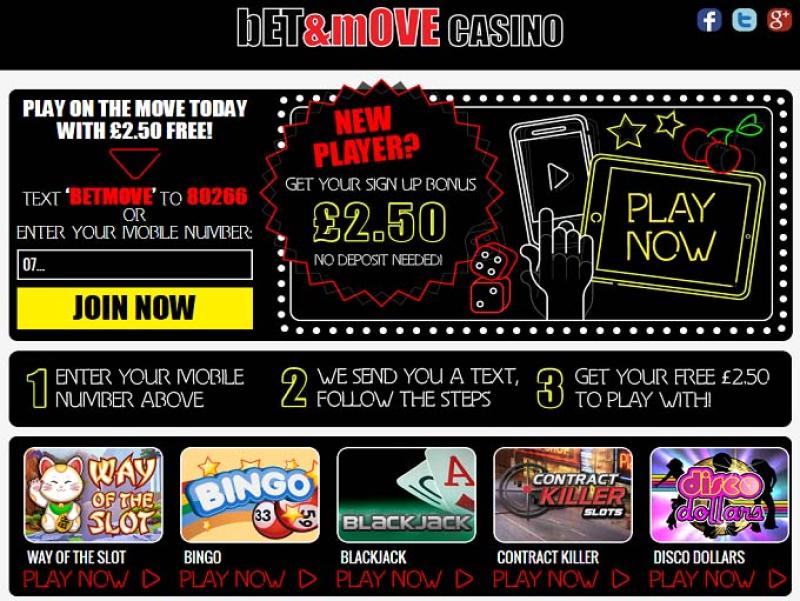 बेट एंड मूव कैसीनो एक ऑनलाइन सट्टेबाजी साइट है जो मोबाइल उपकरणों पर खेलने वाले उपयोगकर्ताओं के लिए विशेष रूप से तैयार की गई है। इस कैसीनो ने 2012 में अपनी शुरुआत की थी और अपने मोबाइल-केंद्रित फोकस, बड़े लाइब्रेरी आकार और औसत भुगतान समय के कारण इसने अच्छी लोकप्रियता हासिल की है।कैसीनो जानकारी