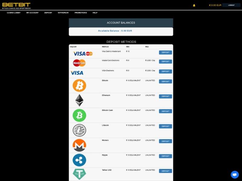 बेटबिट की बैंकिंग प्रणाली सरल लेकिन अच्छी है, क्योंकि यह साइट केवल बिटकॉइन लेनदेन की सुविधा प्रदान करती है। इसका मतलब है कि जमा और निकासी लगभग तुरंत हो जाती है। यह शानदार है, क्योंकि बिटकॉइन वर्तमान में पैसे ट्रांसफर करने के सबसे तेज़ तरीकों में से एक है।