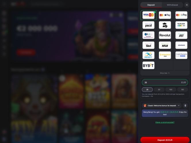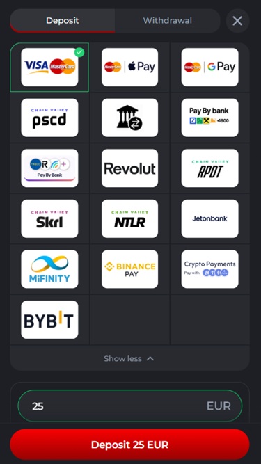 यह कैसिनो फिएट मुद्राओं और क्रिप्टोकरेंसी दोनों को स्वीकार करता है।