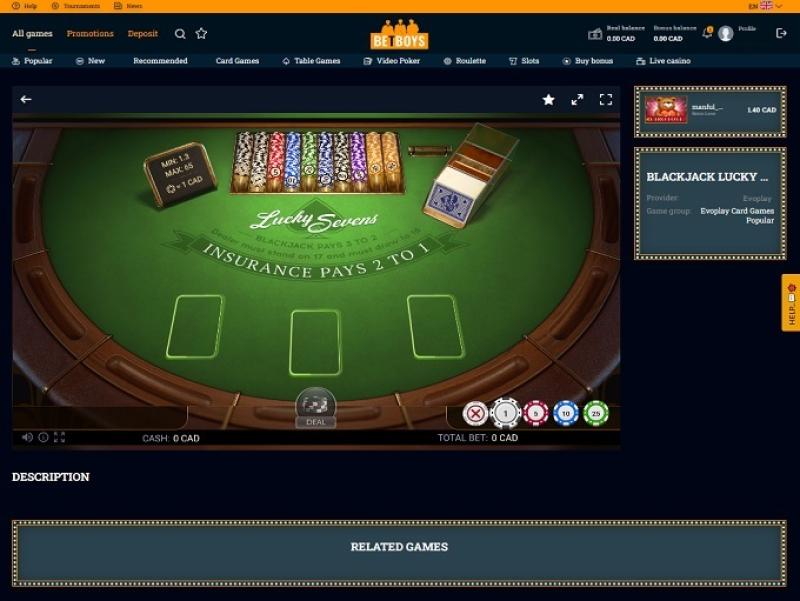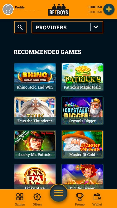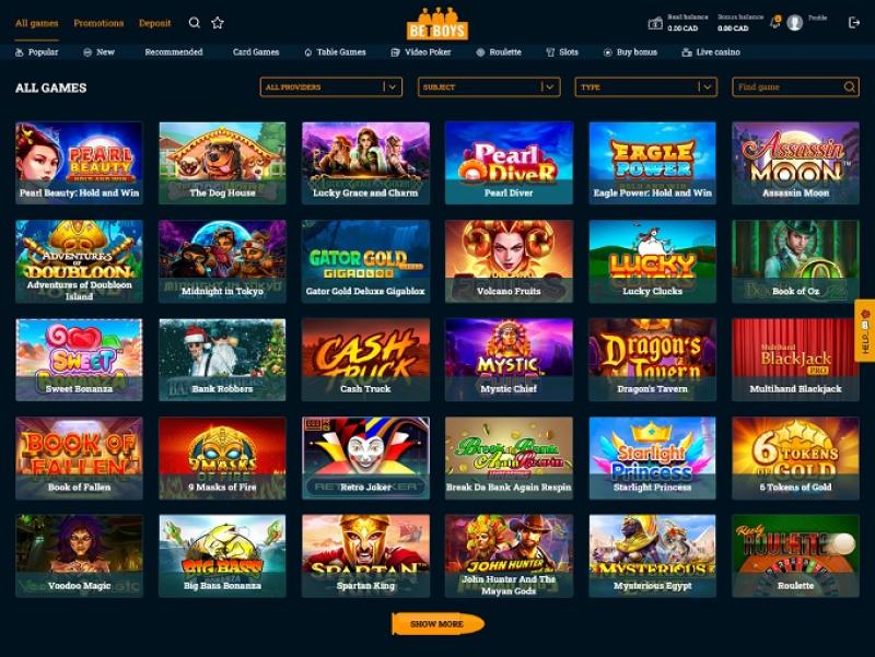 बेटबॉय कैसीनो में उपलब्ध सभी गेम निम्नलिखित श्रेणियों में व्यवस्थित हैं: अनुशंसित, बोनस खरीदें, लोकप्रिय, नया, स्लॉट, रूलेट, टेबल गेम, वीडियो पोकर, कार्ड गेम और लाइव कैसीनो।