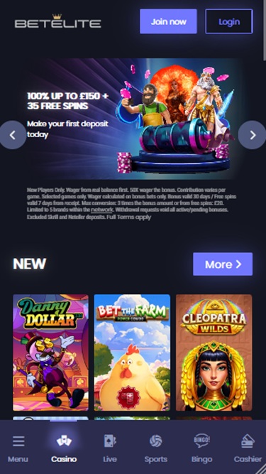 2024 में लॉन्च होने वाला, BetElite जुए के क्षेत्र में एक अपेक्षाकृत नया नाम है। यह कैसीनो ब्रांड फ़िनलैंड के खिलाड़ियों का स्वागत करता है और ऑनलाइन स्लॉट, लाइव डीलर, टेबल गेम, क्रैश गेम और स्पोर्ट्स बेटिंग के कई विकल्पों के साथ एक संपूर्ण जुआ अनुभव प्रदान करता है। एक मज़बूत प्रमोशनल प्लान और क्रिप्टो उपलब्धता के साथ, यह कोई आश्चर्य की बात नहीं है कि इस कैसीनो ने हाल ही में इतना ध्यान आकर्षित किया है।