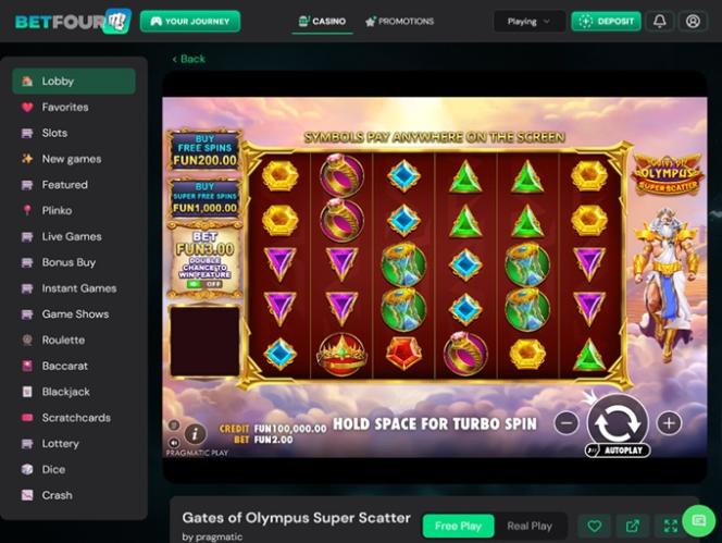 BetFourU कैसीनो प्लेटफॉर्म का लेआउट उपयोगकर्ता के अनुकूल है और पेजों पर नेविगेट करना काफी आसान है। एक आकर्षक वेलकम पैकेज के अलावा, खिलाड़ियों को कई भुगतान विकल्प और गेमों का एक समृद्ध संग्रह भी मिलता है।